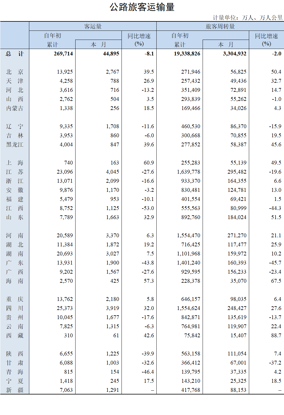 2021年6月公路旅客运输量