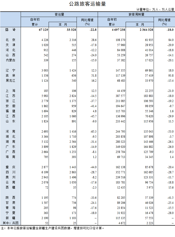 2022年2月公路旅客运输量