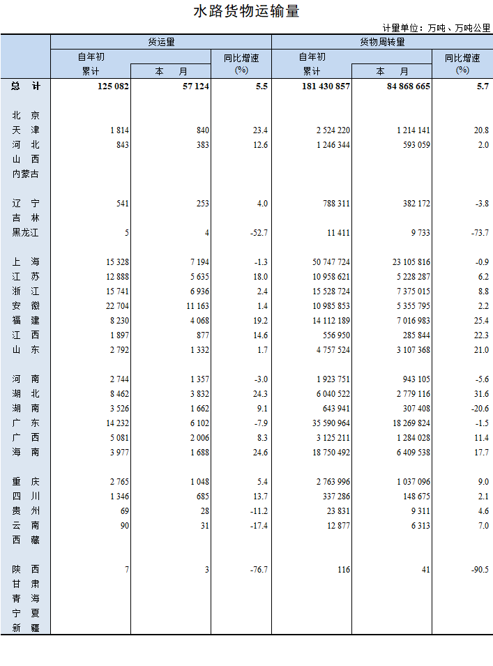 2022年2月水路货物运输量