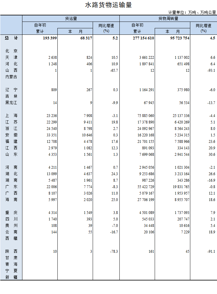 2022年3月水路货物运输量