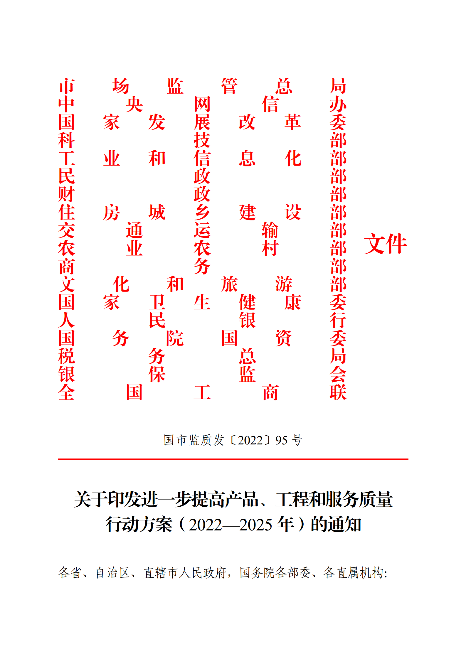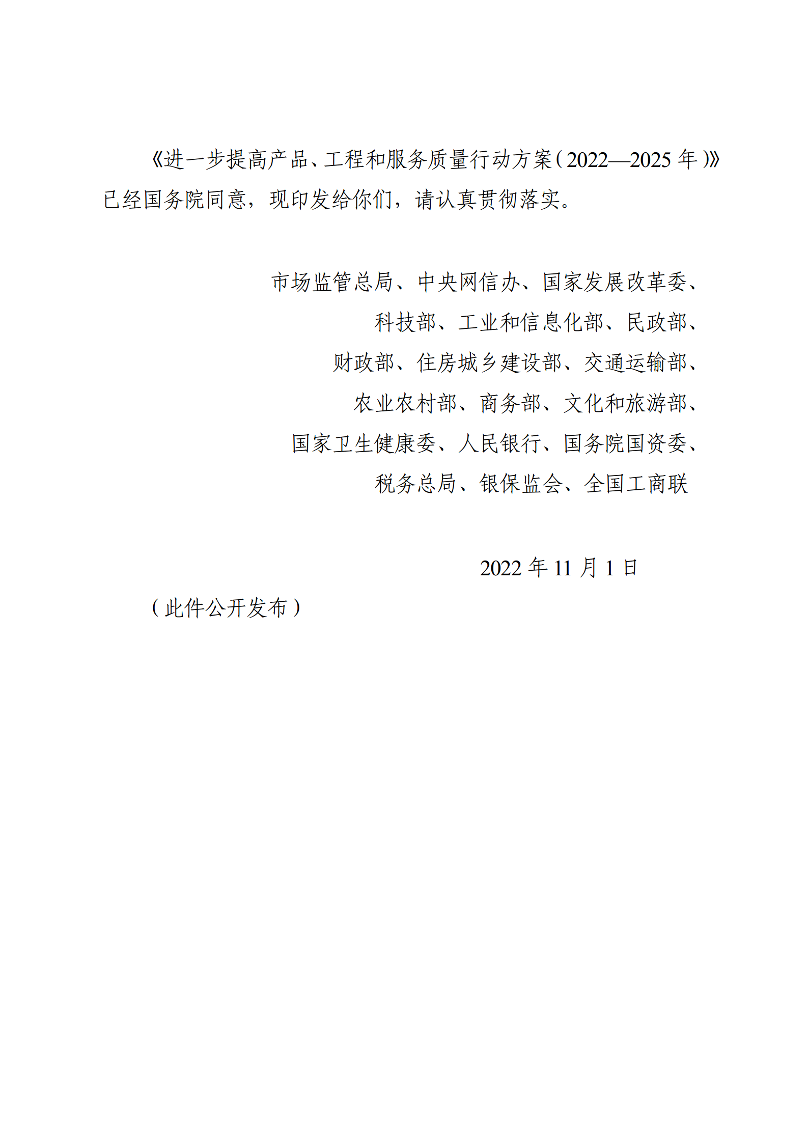 关于印发进一步提高产品、工程和服务质量行动方案(2022—2025年)的通知