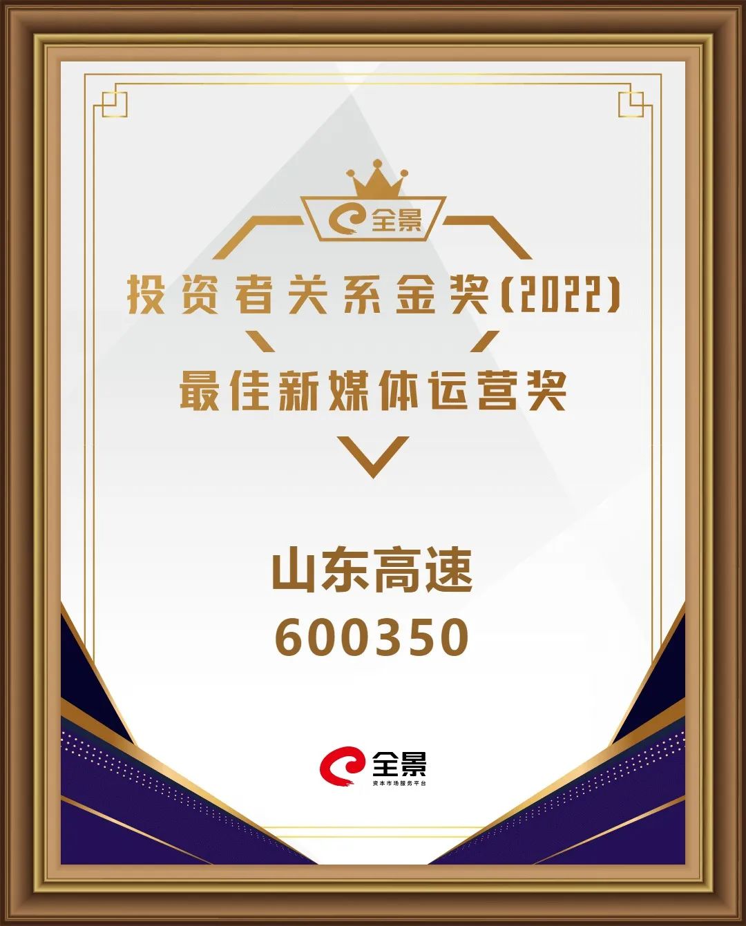 近日,由新财富联合光华-罗特曼信息和资本市场研究中心共同举办的第五届新财富最佳上市公司,以及由深圳市全景网络有限公司主办、南开大学中国公司治理研究院参与推出的“全景投资者关系金奖”2022年度全国性评选结果纷纷揭晓。我会轮值会长单位山东高速斩获新财富“最佳上市公司”与2022年全景投资者关系金奖“最佳新媒体运营奖”两项大奖。