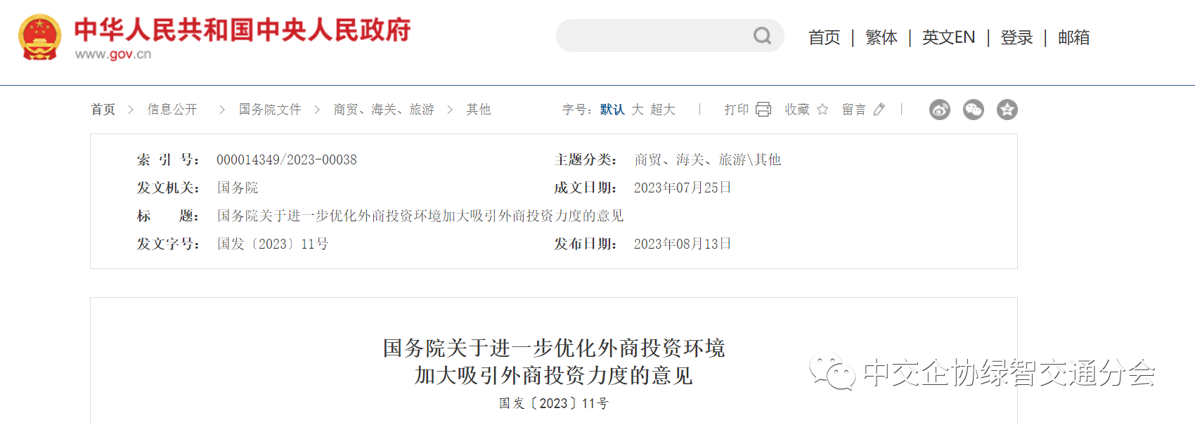 国务院关于进一步优化外商投资环境加大吸引外商投资力度的意见