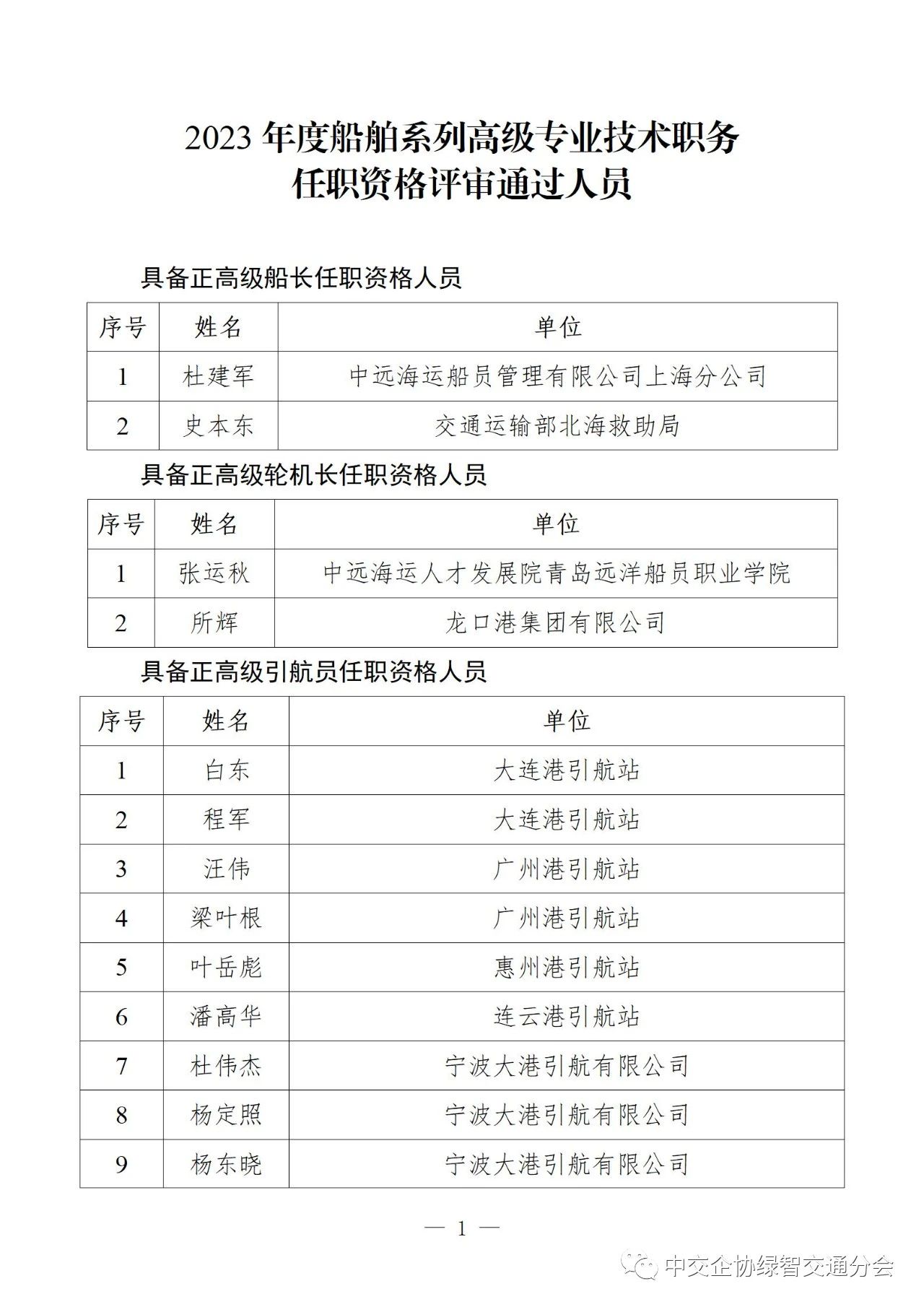 2023年度交通运输部船舶系列高级专业技术职务任职资格评审结果公示