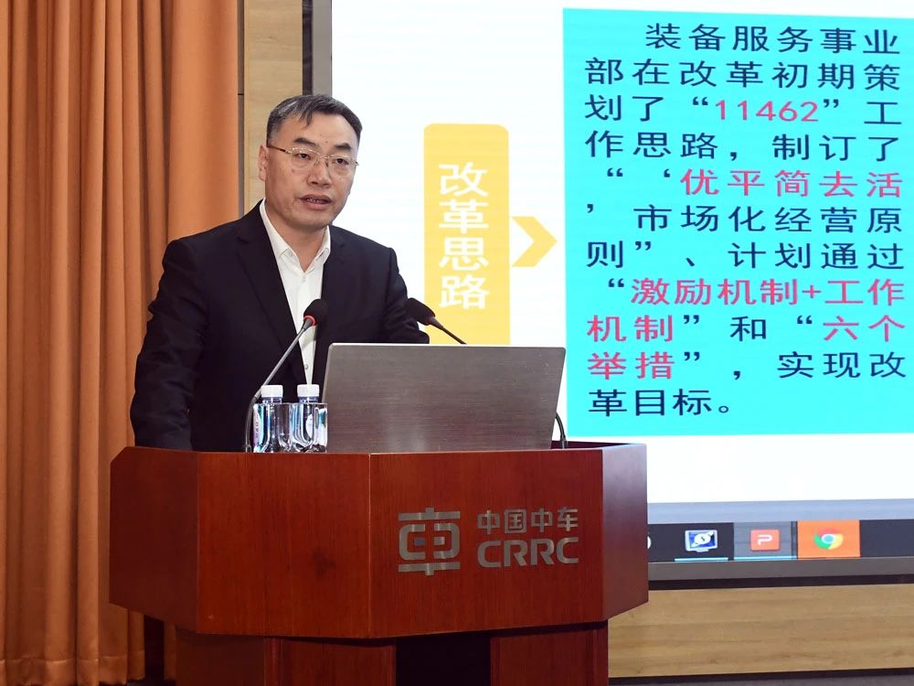 会上,国铁事业部、科技管理部、装备服务事业部等市场板块、技术板块、制造板块、服务板块、子公司板块、总部部门等六大板块的代表单位就改革成效,从改革探索与实践、改革不足与思考、改革方向与举措三方面作经验交流。