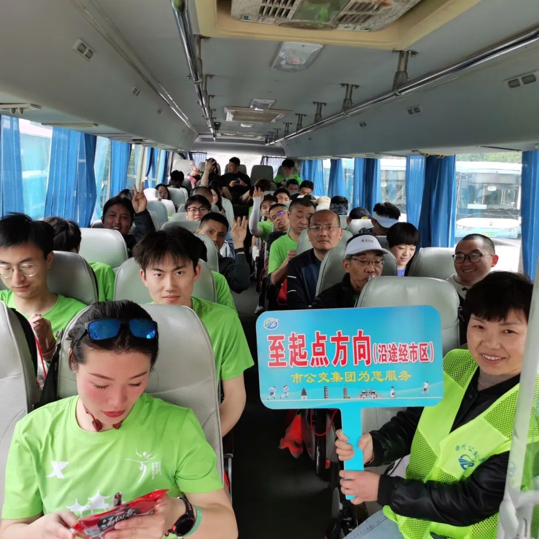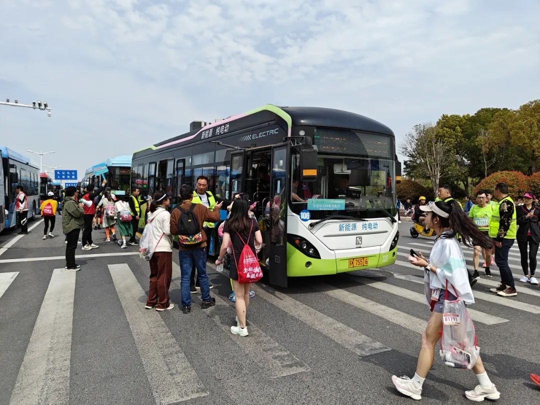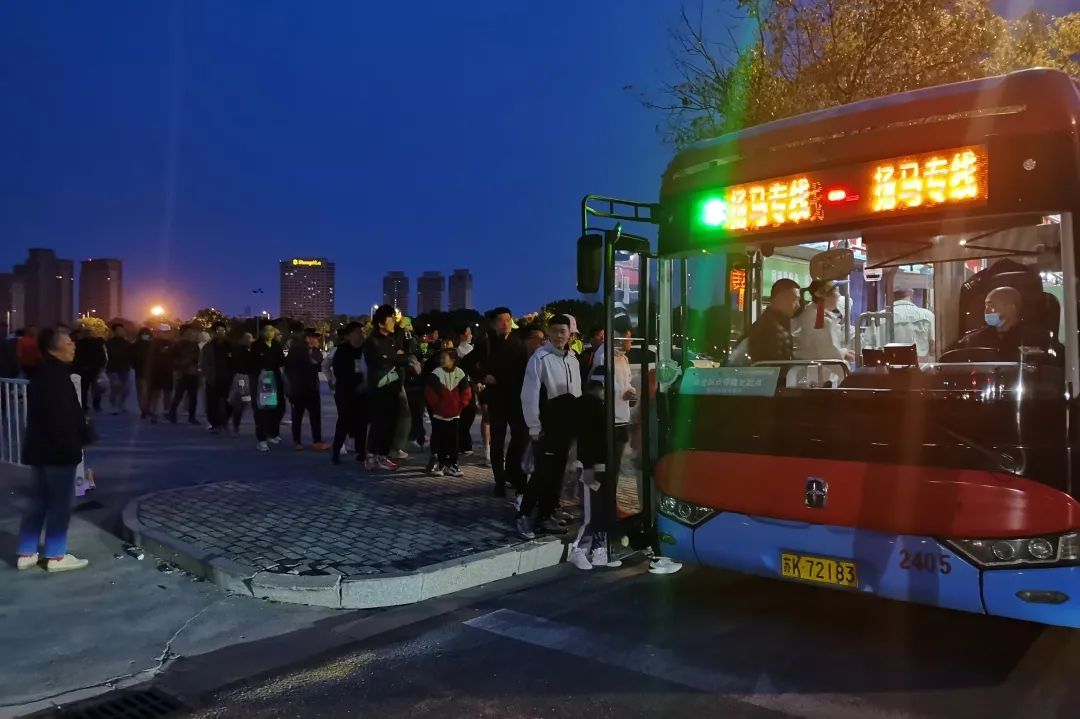 通过周密的前期部署,扬州公交在扬州市区及江都区共设12个接驳发车点位及3个终点疏散点位,调动赛事保障车辆达320辆,首班发车时间最早至4:45,为“扬马”的顺利开展提供了坚实的运输力量