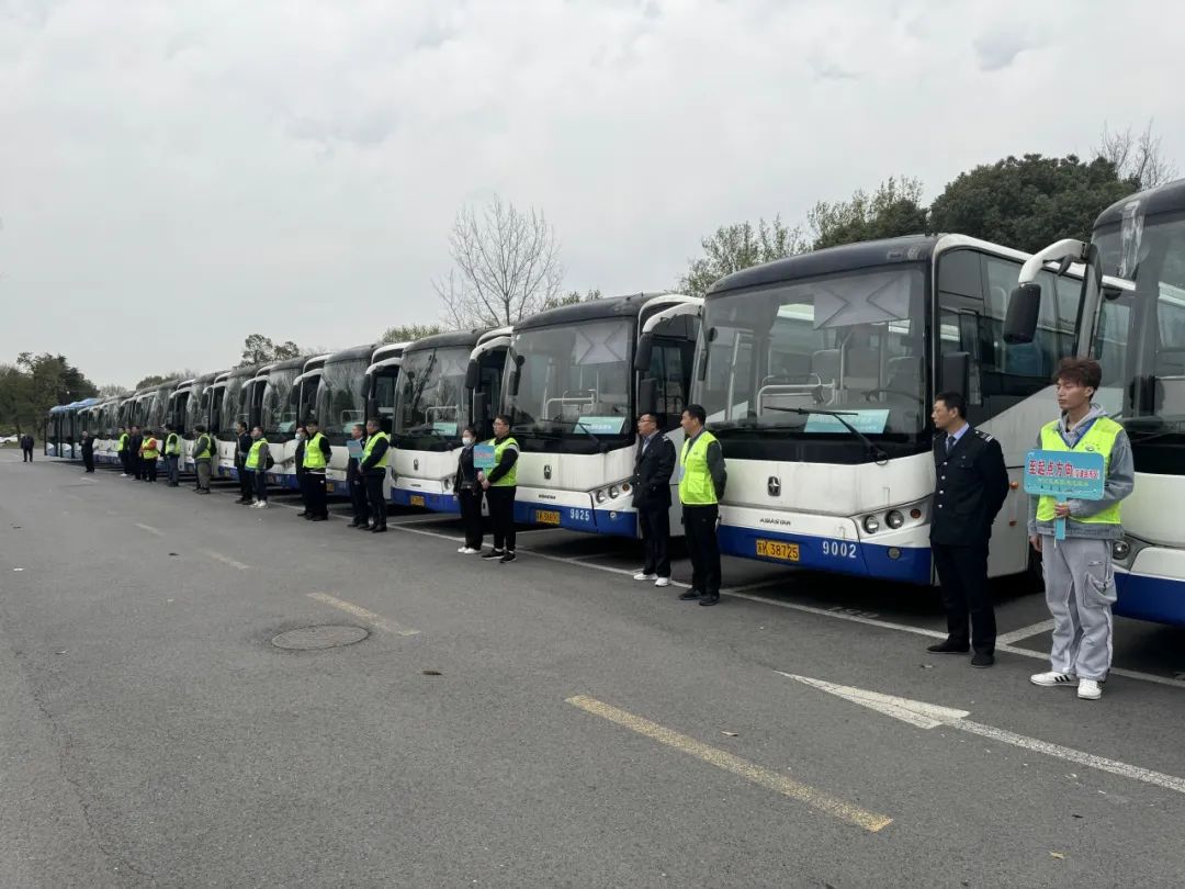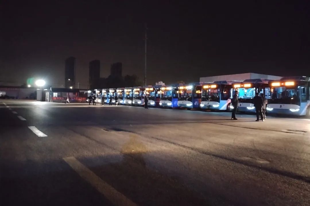 今日凌晨2点,各基层单位依旧灯火通明,许多车长已提前到达场站,在车长及安全员的组织下沟通安全、运输工作,并在出发前再次检查车辆情况、清洁车辆卫生;截止凌晨4点半,12个接驳点位的250辆接驳公交已全部到位。