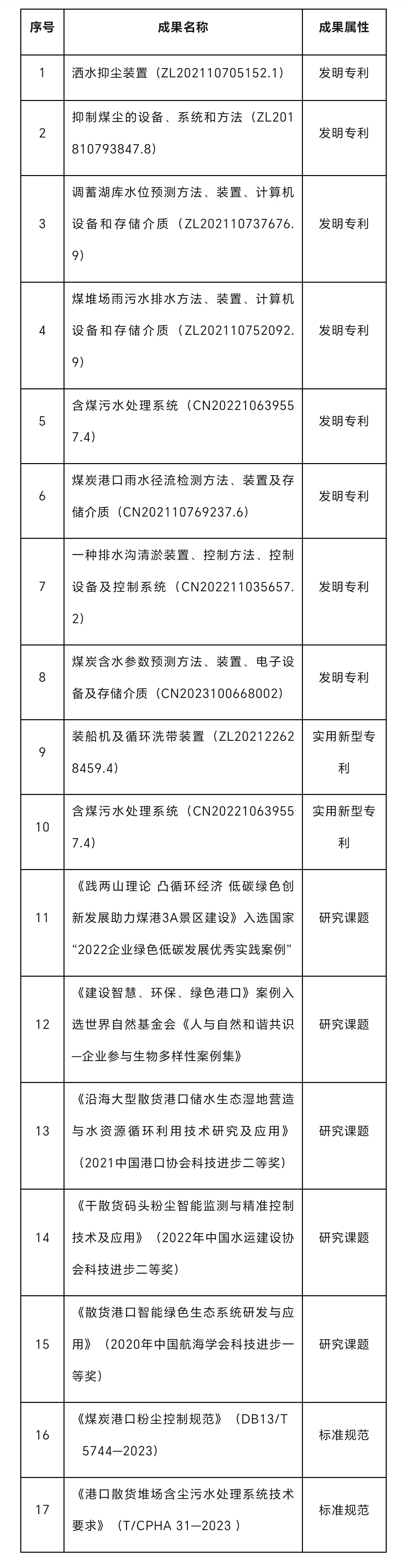 系统梳理船舶码头岸电和粉尘治理工程建设应用成果,全面总结岸电设施和粉尘治理设施运营中的技术、安全、操作、维护、管理等实践经验,借鉴国内现行相关规范标准及相关研究成果,经反复检验,形成系列指导性企业级技术标准。加强技术成果转化,推动企业规范与国家标准结合,参与编制《港口环境在线监测系统设计指南》《煤炭港口粉尘控制规范》《港口散货堆场含尘污水处理系统技术要求》《干散货露天堆场堆料机洒水系统技术要求》等行业、地方和团体标准,为规范岸电、全流程粉尘治理的技术应用、设施操作和管理流程,促进港口绿色低碳转型,推动交通运输高质量发展,提供了重要参考。