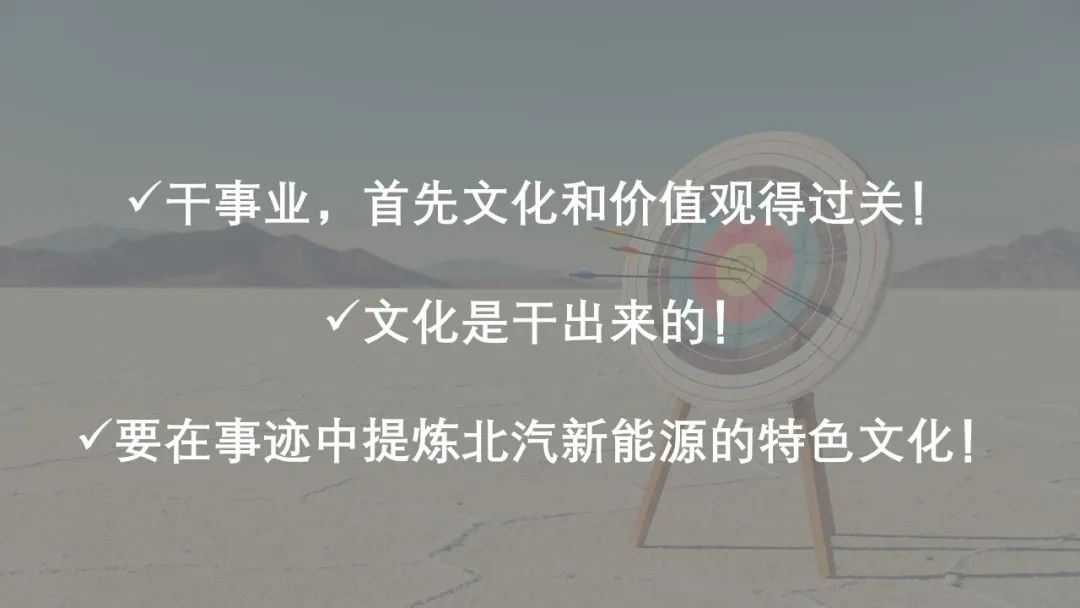 ●三是要讲好北汽新能源文化,严格落实各项宣传文化工作要求,全力推进“创业文化”和“五敢”精神导向建设。