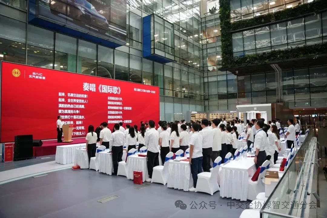 北京新能源汽车股份有限公司工会第三届会员代表大会在庄严的《国际歌》声中胜利闭幕。