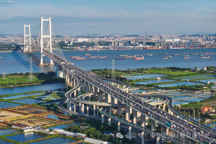 2024年10月2日,广东南沙大桥上的车流和狮子洋水道的船舶来来往往(无人机照片)。新华社记者 刘大伟 摄