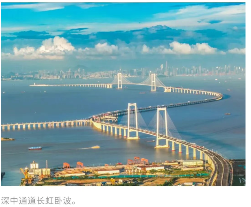 伶仃洋上,全球首个集“桥、岛、隧、水下互通”于一体的跨海集群工程深中通道车水马龙,其建设过程中创下10项世界之最,填补了我国在钢壳沉管隧道领域的空白。
