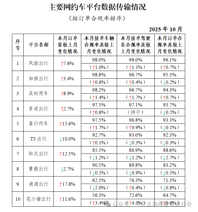 网约车监管信息交互系统发布2025年10月份网约车行业运行基本情况