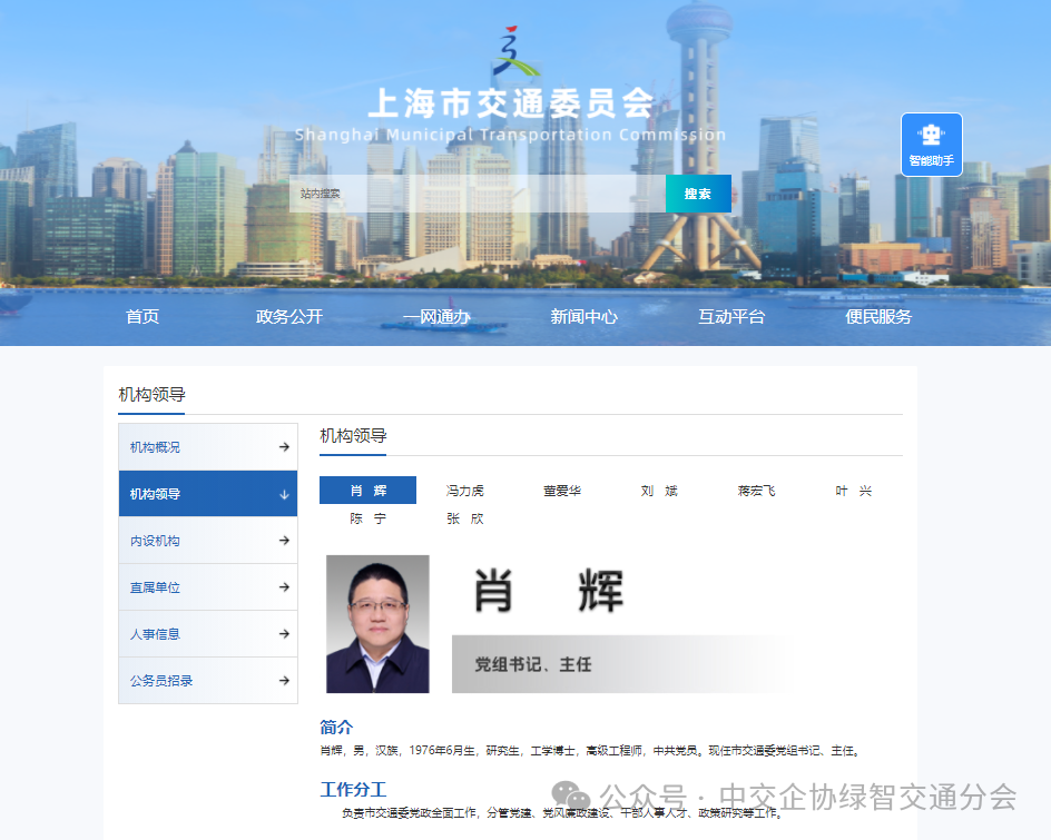 其中,决定任命肖辉为上海市交通委员会主任。目前,上海市交通委员会官网“机构领导”栏目已更新。