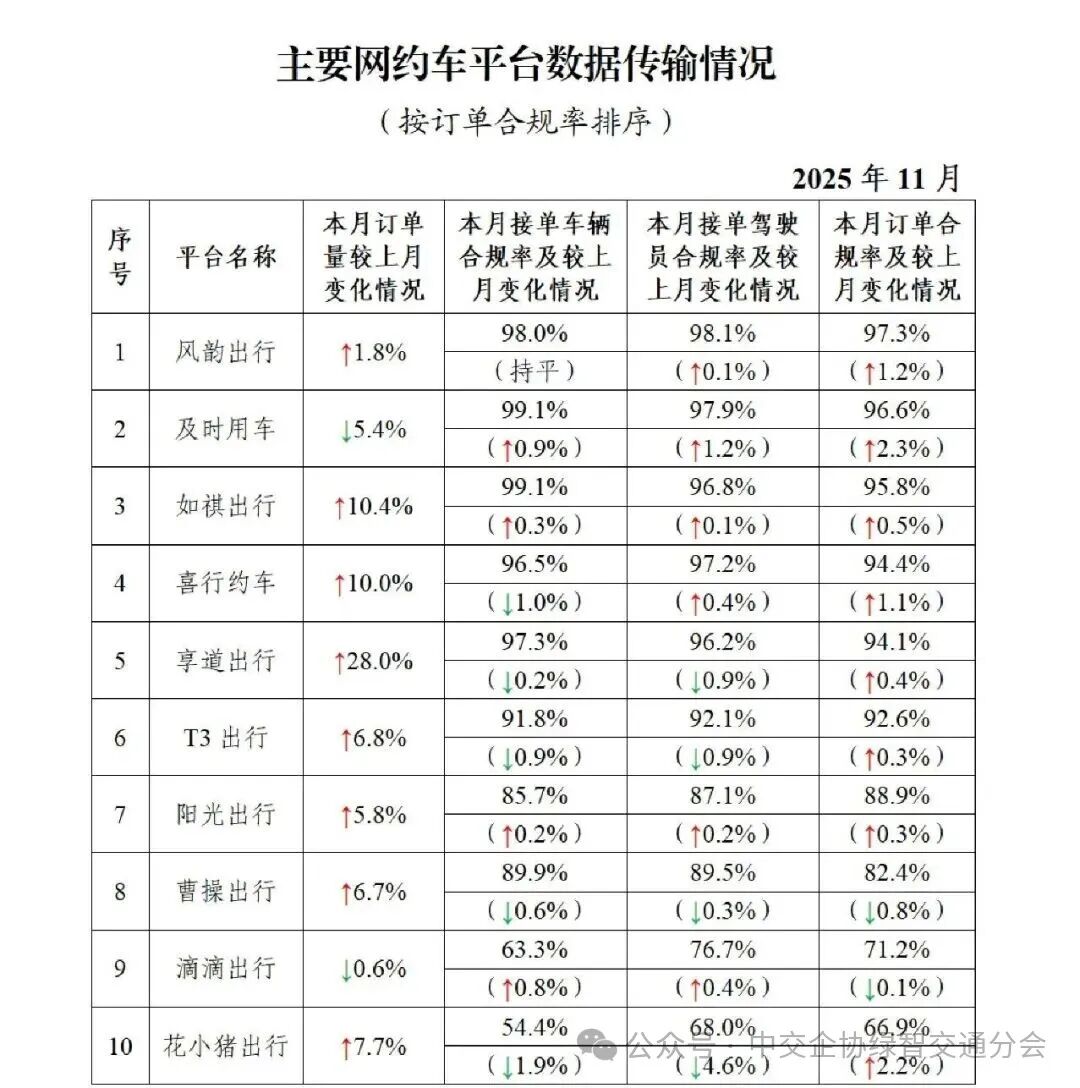 网约车监管信息交互系统发布2025年11月份网约车行业运行基本情况