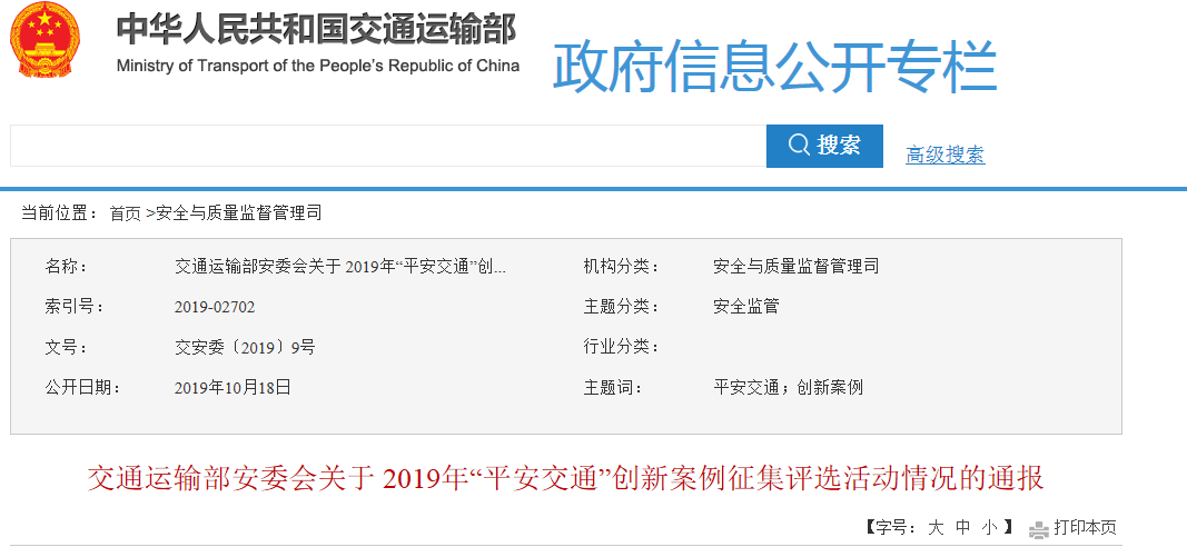热烈祝贺我会向交通运输部安委会推荐的三个项目荣获“平安交通”安全创新案例|附本次评选活动文件通知及完整名单