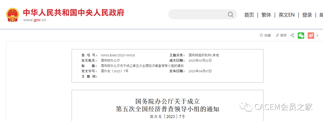 各省、自治区、直辖市人民政府,国务院各部委、各直属机构:为加强对第五次全国经济普查工作的领导,根据《全国经济普查条例》…