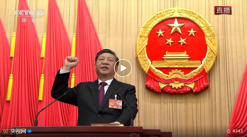 新当选的国家主席、中央军委主席习近平进行宪法宣誓