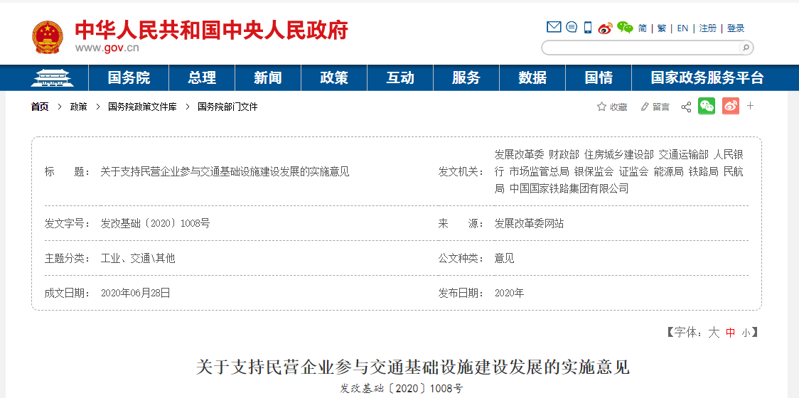 关于支持民营企业参与交通基础设施建设发展的实施意见