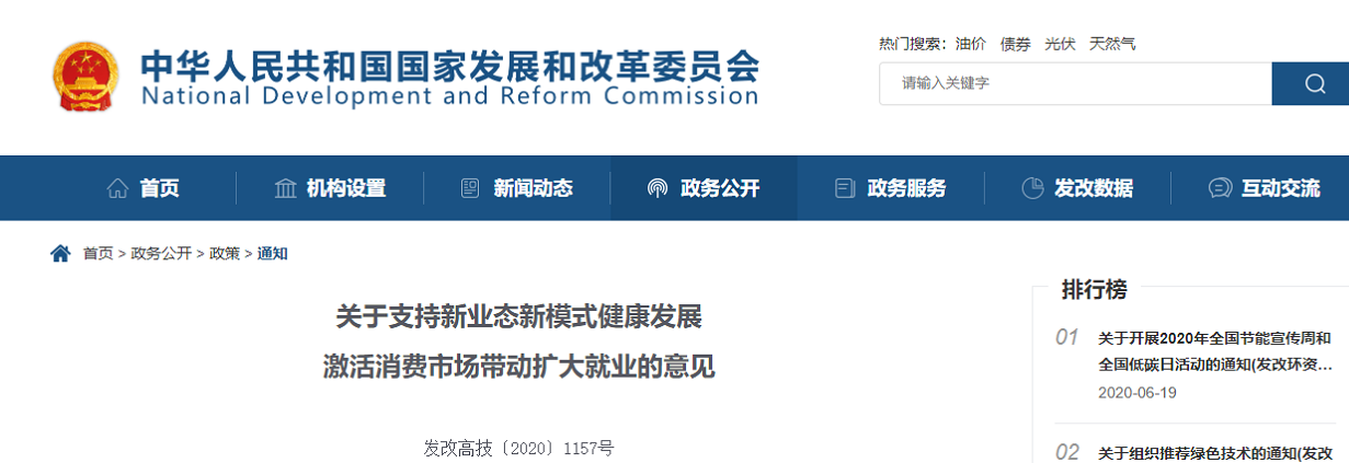 关于支持新业态新模式健康发展 激活消费市场带动扩大就业的意见