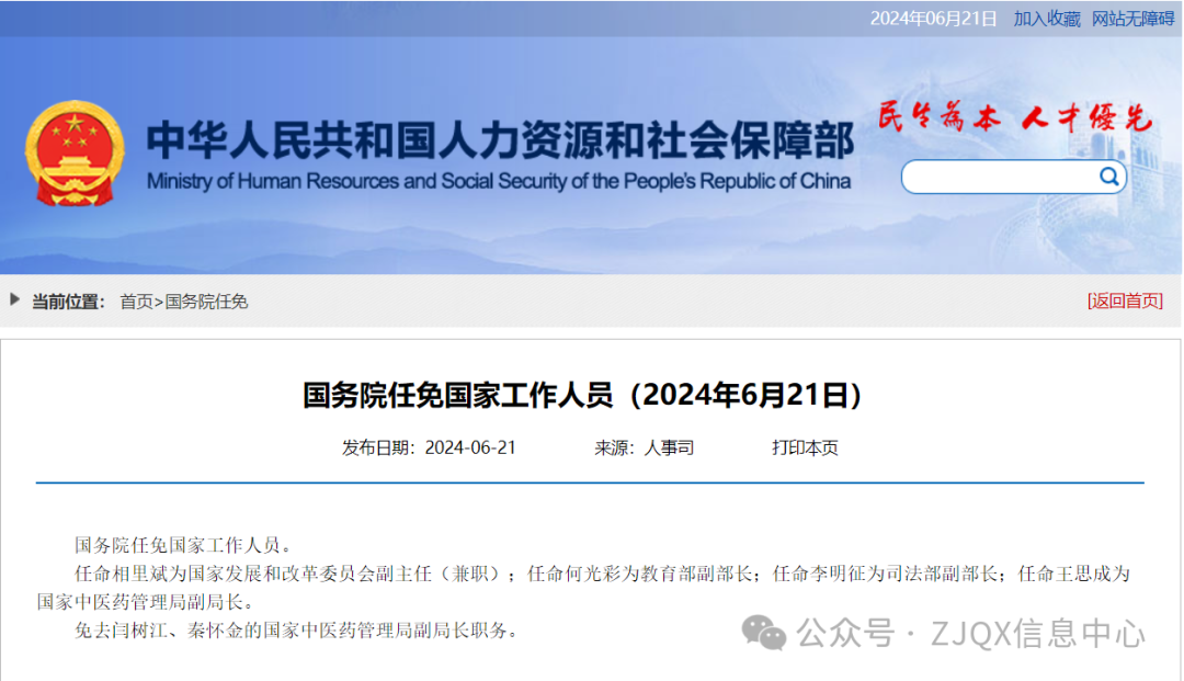 人事任免|相里斌任国家发展和改革委员会副主任(兼职)、何光彩任教育部副部长、李明征任司法部副部长、王思成任国家中医药管理局副局长