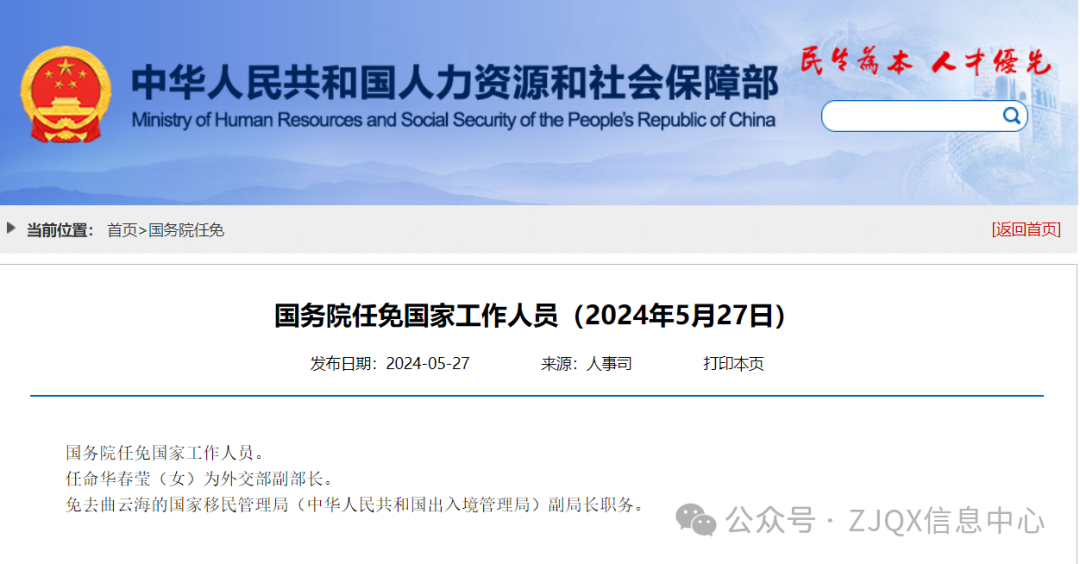 人事任免|华春莹(女)任外交部副部长