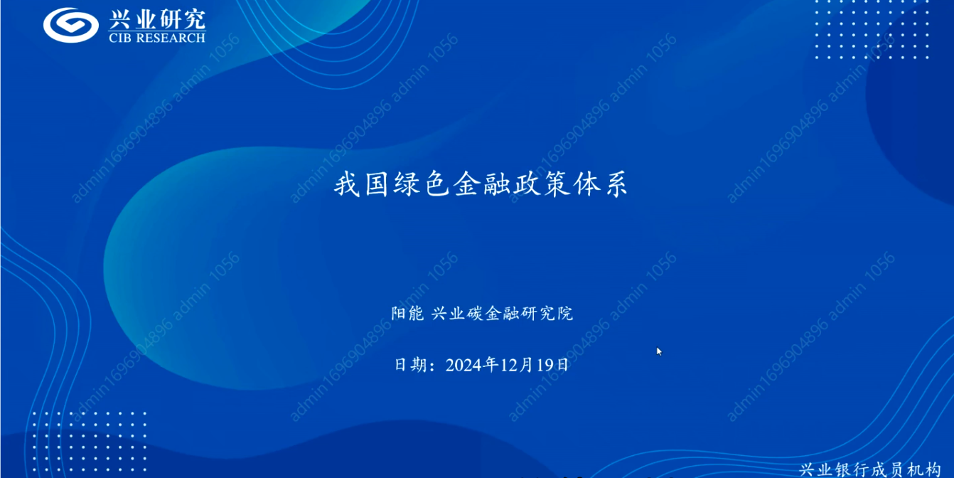 公益讲座2024年第5期“中国绿色金融政策体系”