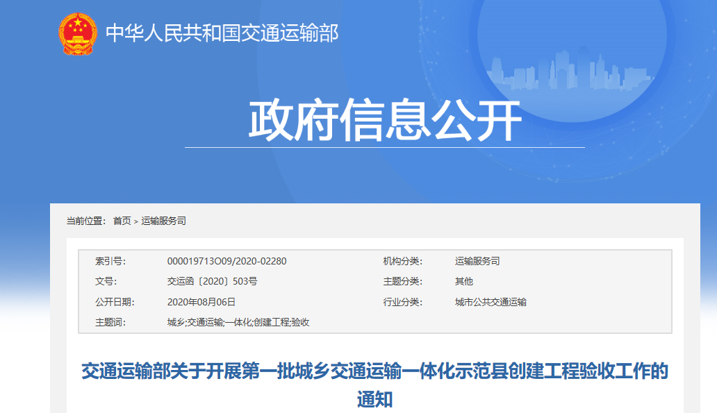 (二)《交通运输部办公厅关于开展城乡交通运输一体化建设工程有关事项的通知》(交办运〔2016〕140号)。