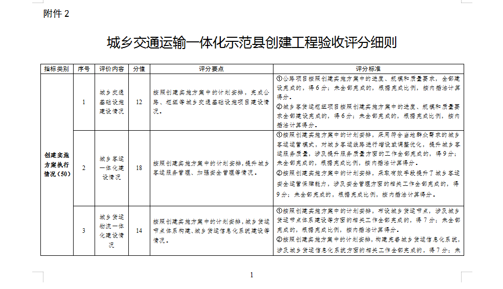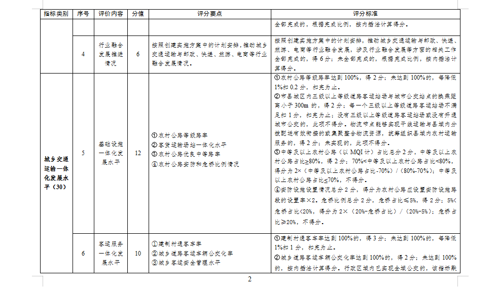 2.城乡交通运输一体化示范县创建工程验收评分细则