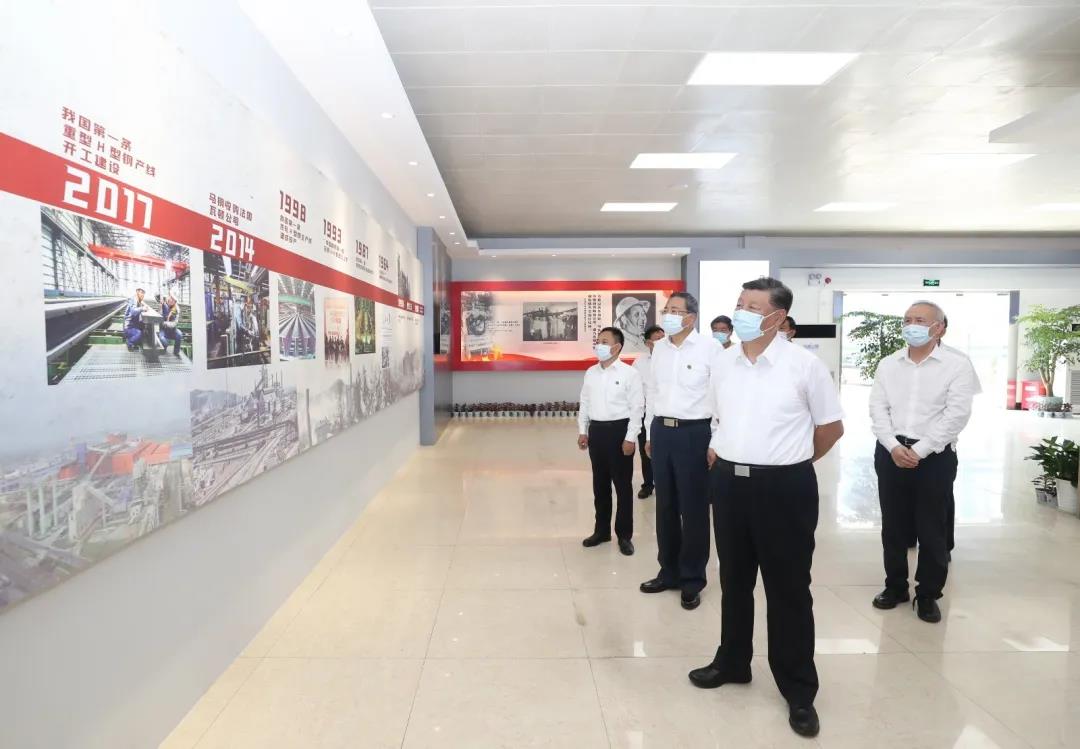 习近平总书记19日上午在安徽省马鞍山市考察调研。他首先来到薛家洼生态园,实地察看长江水势水情、岸线综合整治和生态环境保护修复等情况。随后,习近平前往中国宝武马钢集团,走进生产车间,了解企业复工复产和经营情况。