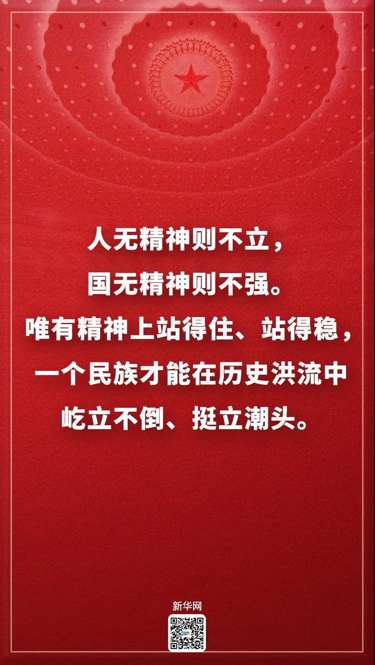 人无精神则不立,国无精神则不强。唯有精神上站得住、站得稳,一个民族才能在历史洪流中屹立不倒、挺立潮头。同困难作斗争,是物质的角力,也是精神的对垒。伟大抗疫精神,同中华民族长期形成的特质禀赋和文化基因一脉相承,是爱国主义、集体主义、社会主义精神的传承和发展,是中国精神的生动诠释,丰富了民族精神和时代精神的内涵。我们要在全社会大力弘扬伟大抗疫精神,使之转化为全面建设社会主义现代化国家、实现中华民族伟大复兴的强大力量。