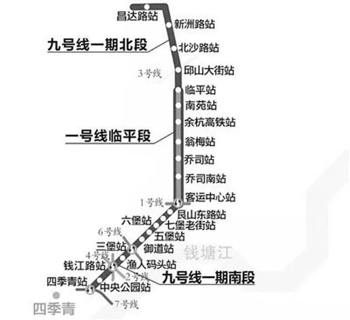 地铁9号线一期工程分为临平站(不含)至昌达路站和四季青站至客运中心站(不含)两段,线路全长16.9公里,共设车站14座,计划2021年建成。