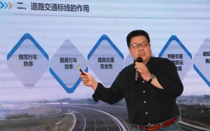 特邀嘉宾中国交通企业协会副秘书长、中国交通企业协会反光材料分会会长孙贤军在会上做了重要发言,以行业资深专家的视角和对交通安全行业发展前景、以及当前行业前沿技术等内容进行了精彩分享,同与会同行朋友们进行了一次全面、系统的行业发展方向和前景展望,使大家致力于发展和壮大交通安全行业的思路更加清晰,坚定了做大做强的信心和动力。
