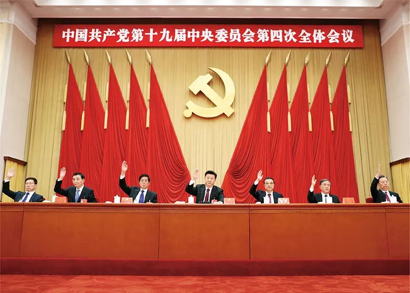中国共产党第十九届中央委员会第四次全体会议,于2019年10月28日至31日在北京举行。这是习近平、李克强、栗战书、汪洋、王沪宁、赵乐际、韩正等在主席台上。新华社记者 鞠鹏 摄