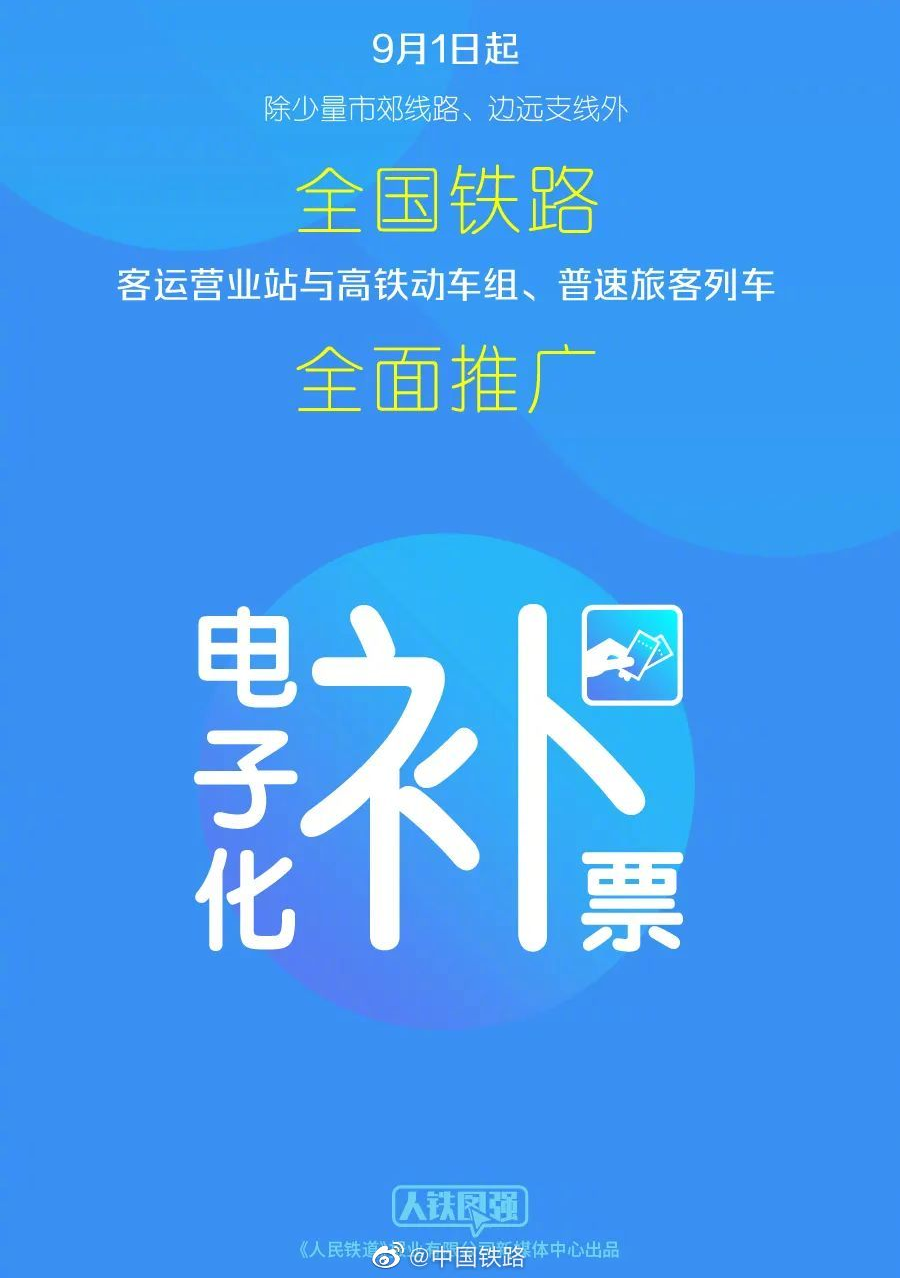 9月1日起铁路部门全面推广电子化补票9月1日起,除少量市郊线路、边远支线外,全国铁路客运营业站与高铁动车组、普速旅客列车全面推广电子化补票。推广电子化补票,是铁路部门推动数字技术赋能交通物流绿色化转型的具体行动,也是深入实施客运供给侧改革的重要举措和铁路电子客票的深化拓展。