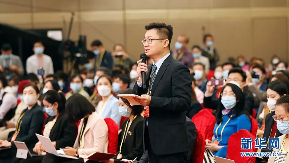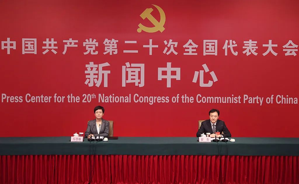 图片中国共产党第二十次全国代表大会新闻中心举行记者招待会现场。新华社记者 贾浩成 摄