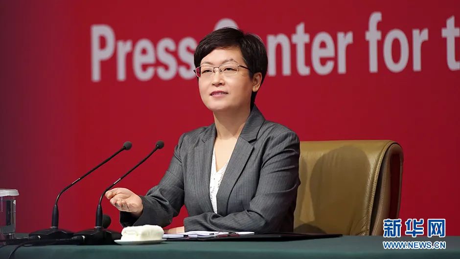 图片第五场记者招待会主持人、中央宣传部对外新闻局副局长邢慧娜。新华网 刘厦 摄