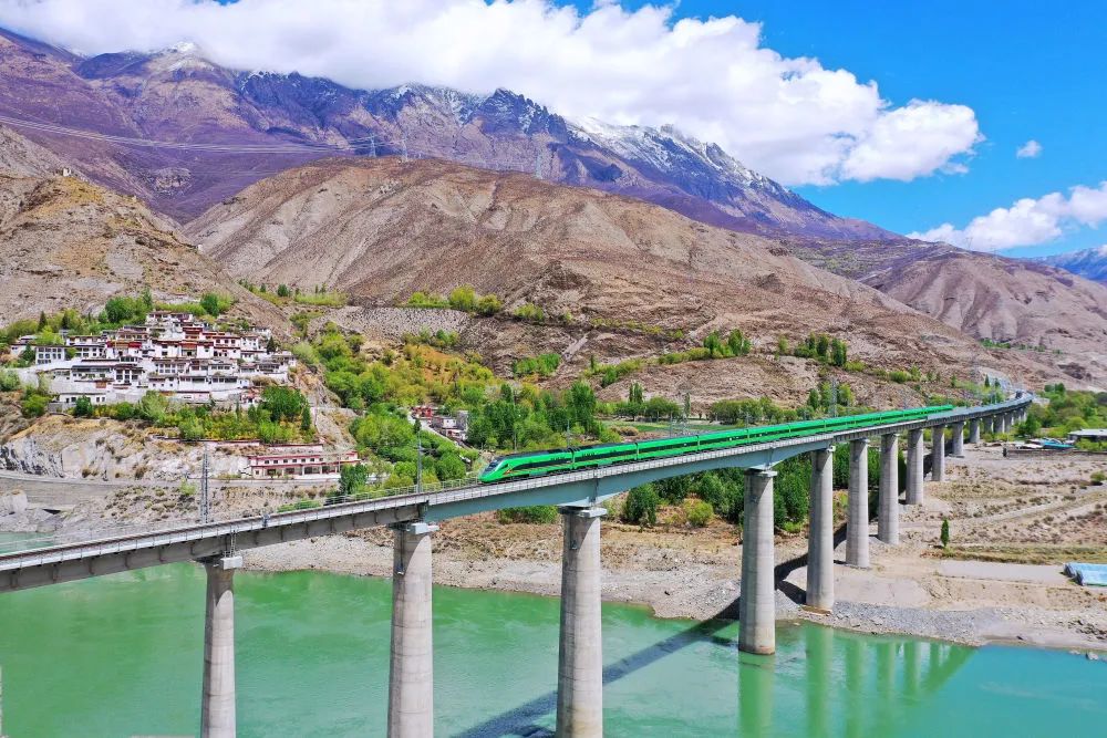 复兴号列车行驶在西藏朗县境内(2022年4月14日摄)。新华社记者 觉果 摄