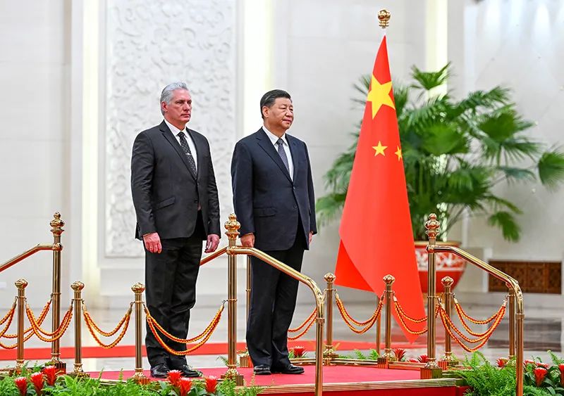 习近平指出,你是中共二十大后首位访华的拉美和加勒比国家元首,充分体现了中古两党两国的特殊友好关系。古巴是西半球第一个同新中国建立外交关系的国家,中古关系成为社会主义国家团结合作、发展中国家真诚互助的典范。中方愿同古方不断深化政治互信,拓展务实合作,在涉及彼此核心利益问题上坚定相互支持,在国际和地区事务中加强协调配合,在建设本国特色社会主义道路上携手并进,不断深化新时代中古关系。