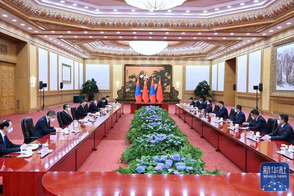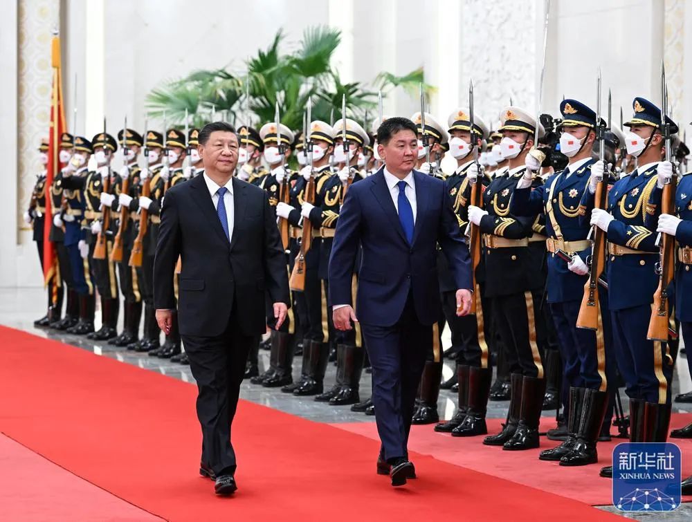 习近平欢迎呼日勒苏赫访华。习近平指出,我们时隔两月如约再次会面,充分体现了中蒙关系的高水平。中蒙互为重要邻国,保持中蒙长期稳定的睦邻友好合作关系,符合两国人民根本利益。中国坚持亲诚惠容理念和与邻为善、以邻为伴周边外交方针,高度重视深化中蒙友好互信和利益融合。双方携手抗疫,守望相助,弘扬了传统友谊。两国各领域交流合作不断走深走实,树立了国与国交往的典范。面对不稳定性不确定性日益上升的国际环境,中方愿同蒙方以构建两国命运共同体为引领,推动中蒙全面战略伙伴关系行稳致远,更好造福两国人民。
