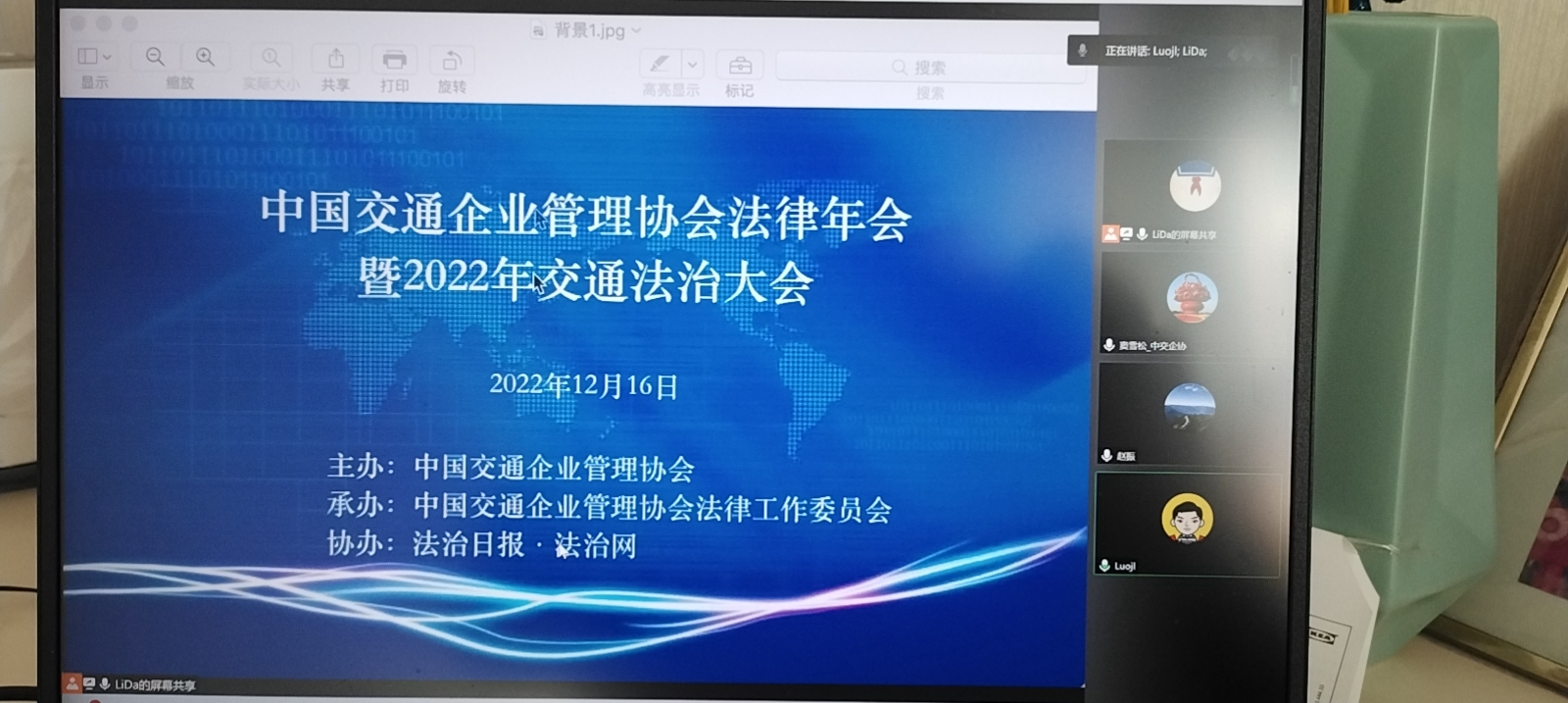 由中国交通企业管理协会主办、法治网协办、法律工作委员会承办的《中国交通企业管理协会法律年会暨2022年交通法律大会》,于2022年12月16日上午在北京以腾讯视屏会议方式召开。中国交通企业管理协会杨咏会长、法治日报社邵炳芳社长、党委书记,中国交通企业管理协会李长祁监事长、中国交通企业管理协会张骋秘书长、中国交通企业管理协会法律工作委员会骆九连理事长、中国交通企业管理协会法律工作委员会窦雪松副理事长等领导出席会议。会议特邀全国劳动模范、党的十九大和二十大代表方秋子,国务院国资委吕汉阳处长,交通运输部管理干部学院教授、法工委顾问张柱庭,中国人民大学法学院副院长、法工委顾问张龑,哈尔滨工业大学(深圳)二级教授、国家社科基金重大项目首席专家、中交企协监事、法工委副理事长赵劲松等出席大会;全国交通企业法律专家,学者、专兼职干部150多人线上参会,会议由中国交通企业管理协会赵振总法律顾问主持。