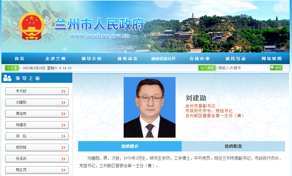 另据兰州市人民政府官网信息显示:刘建勋已出任兰州市委副书记,市政府代市长,兰州新区管委会第一主任(兼)。