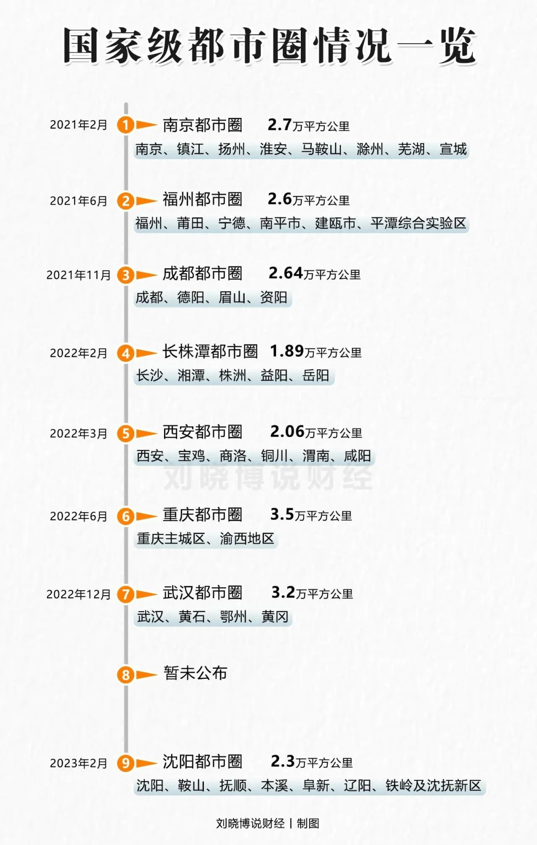 解读:建设现代化都市圈,是新一轮城镇化的重点方向。自2021年2月南京都市圈获批以来,已有南京、福州、成都、长株潭、西安、重庆及武汉7个都市圈相继晋升“国家级”。除沈阳外,第8个国家级都市圈尚未公开亮相。