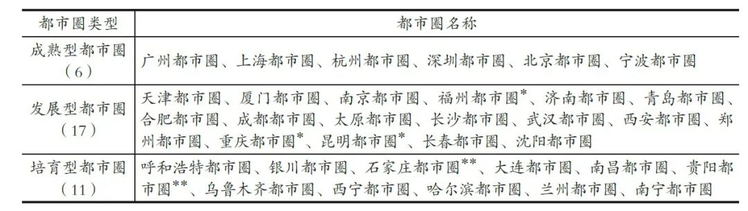 此外,根据清华大学中国新型城镇化研究院组编的《中国都市圈发展报告》,我国共有6个成熟型都市圈、17个发展型都市圈、11个培育型都市圈。