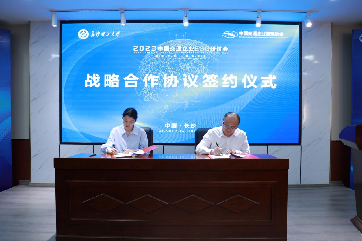 会议举行了战略合作协议签约仪式,中国交通企业管理协会秘书长张骋与长沙理工大学经管学院副院长彭新宇(主持工作)进行了协议的签订。双方共同成立了“交通企业社会责任研究中心”。