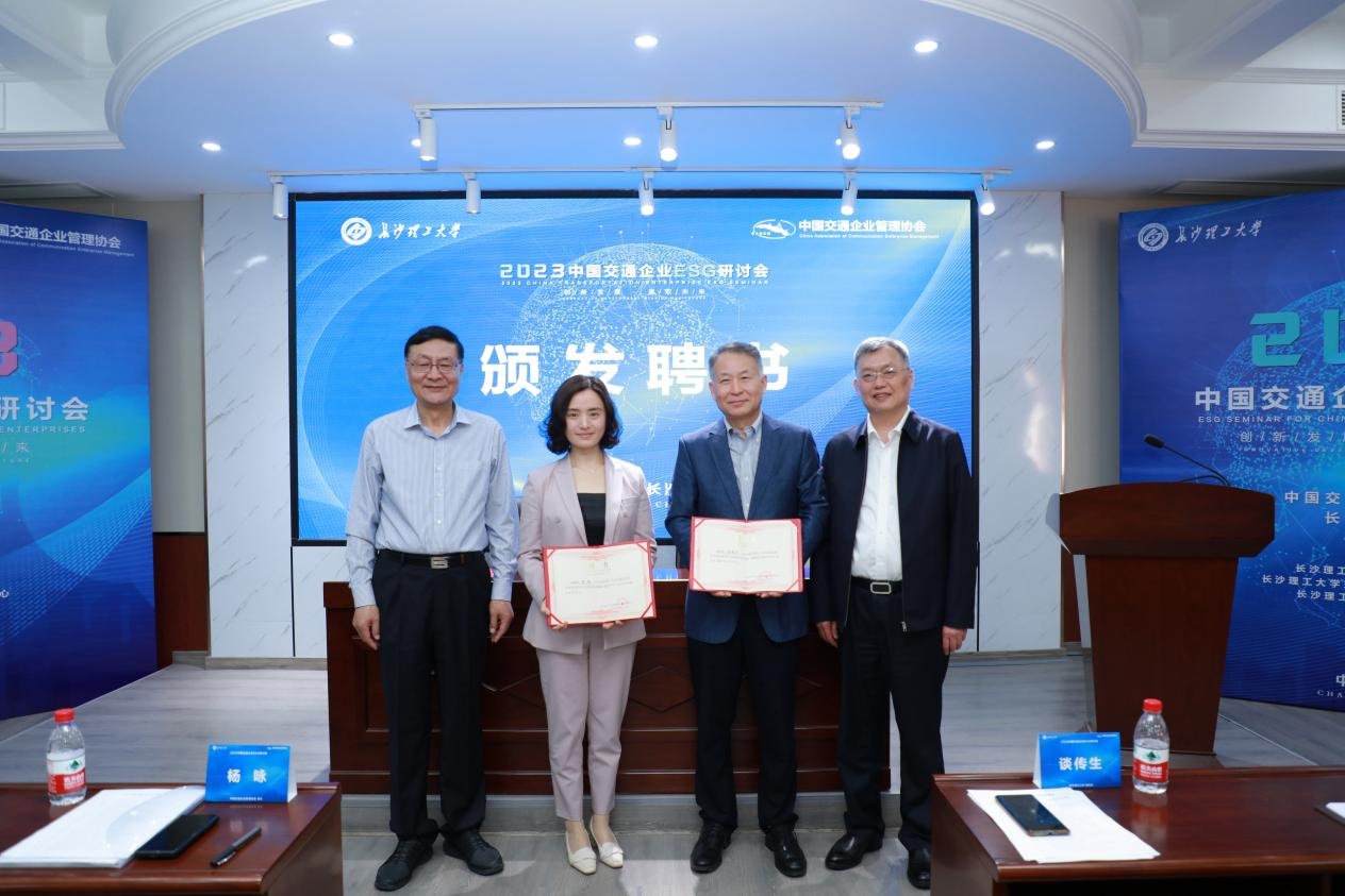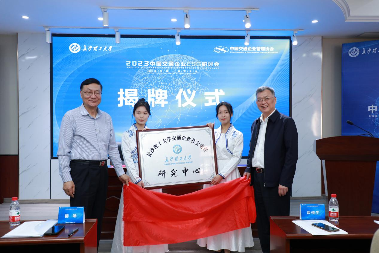 杨咏会长与谈传生副校长共同为“交通企业社会责任研究中心”揭牌,并为中国公路学会监事长巨荣云、湖南大学杨艳教授颁发首席专家聘书。