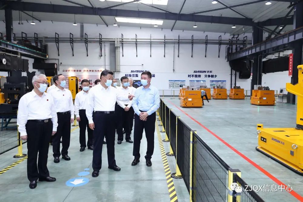 2022年8月17日,习近平在沈阳新松机器人自动化股份有限公司生产车间考察。