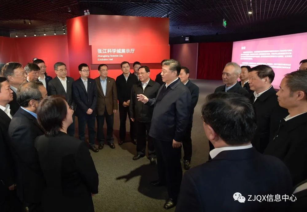 2018年11月6日,习近平在上海张江科学城展示厅考察时,同在场的科技工作者亲切交谈。