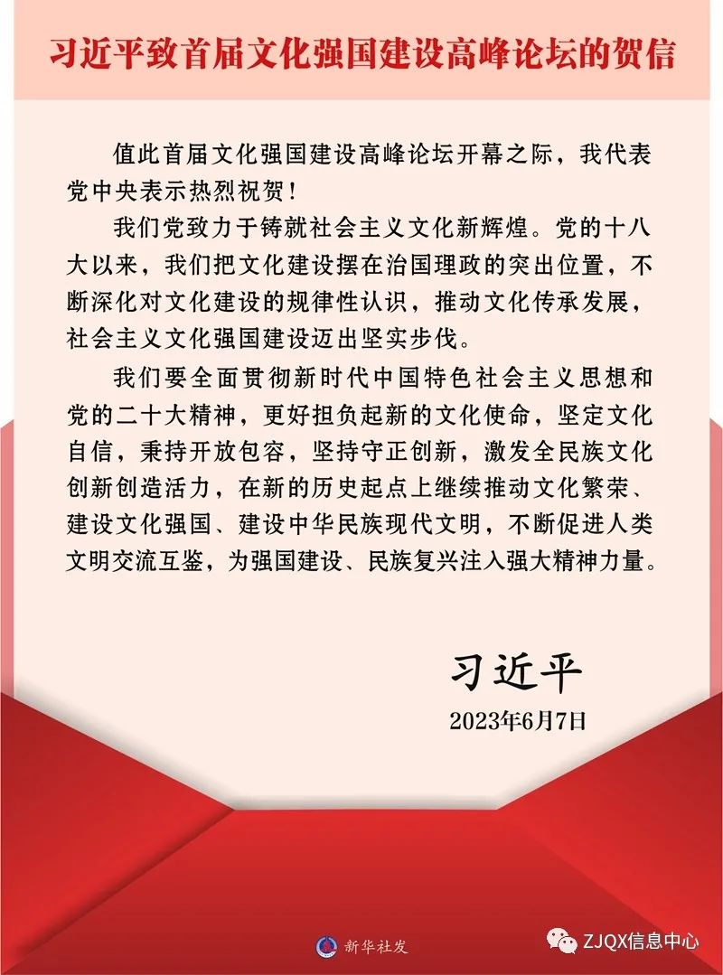 习近平致信祝贺首届文化强国建设高峰论坛开幕强调 更好担负起新的文化使命 为强国建设民族复兴注入强大精神力量