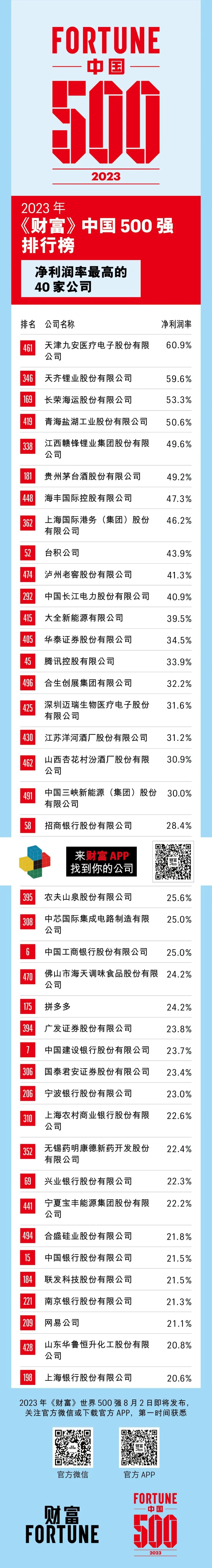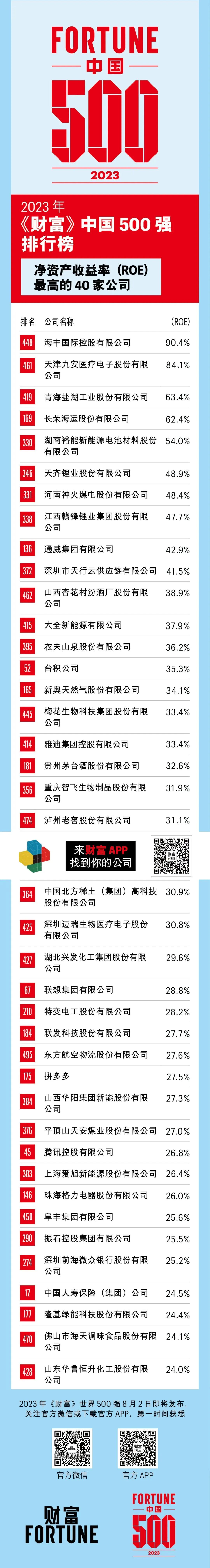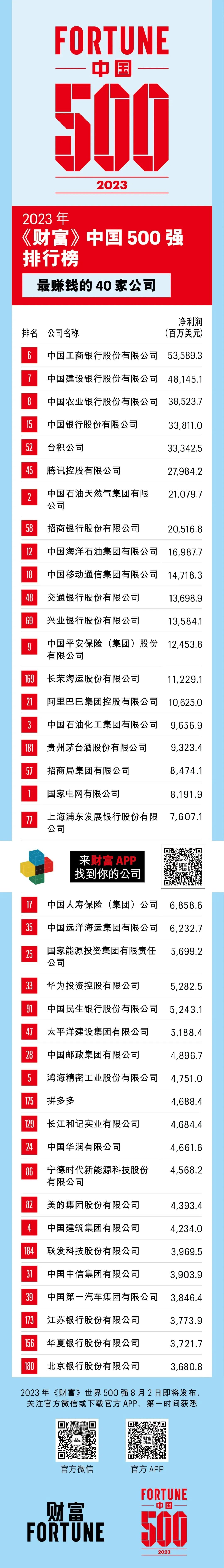 财富Plus APP于北京时间7月25日发布了2023年《财富》中国500强排行榜。